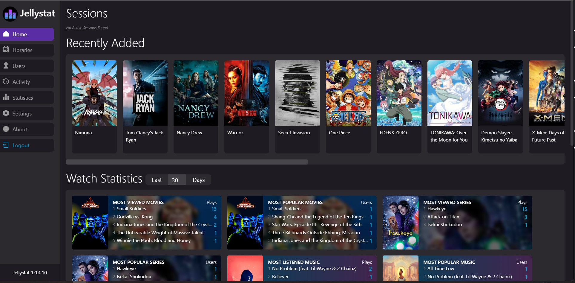 Jellystat is a free and open source Statistics App for Jellyfin! (This project is still in development - expect some weirdness)